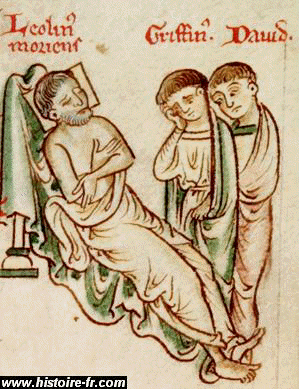 La mort de Llewelyn, enluminure issue d'un ouvrage datant du